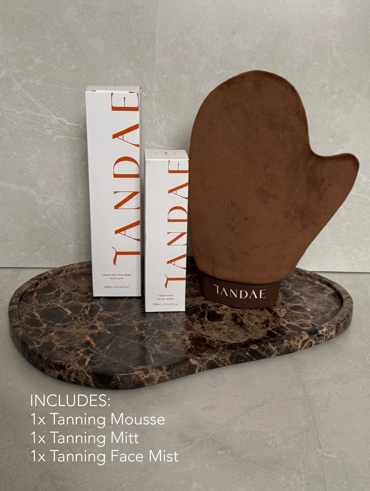 Your Tandae favourites, all in one. This trio features our best-selling Tanning Mousse, Mist and Mitt – the essentials for a flawless, golden tan every time. Perfect if you’re topping up your tanning routine or gifting someone our most-loved products.